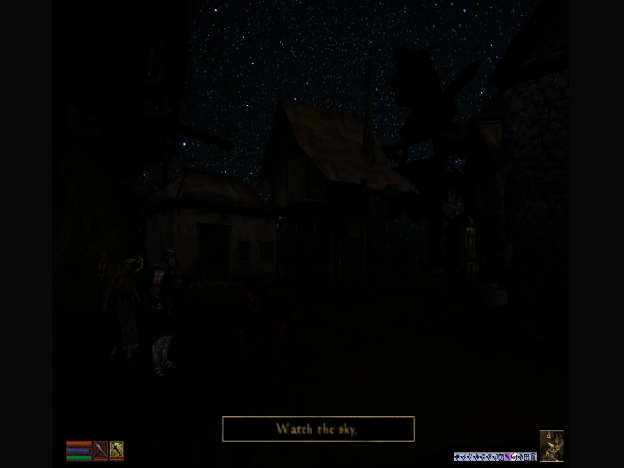 Other than that, the only noticeable difference is that at night, at random intervals, every NPC in the game will go outside for a few minutes. During this time, the only thing they will say when hailed is, "Watch the sky." Once they return to their normal behavior they act like normal, though.
